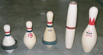 You can see by this photo the varieties there are in bowling pins. Duckpins are the second two from the left. The tall narrow pin is called a Candle Pin is the second from the right. The standard bowling pin, for many of us, is on the far right. You will notice the two other pins with a rubber collar around the pin, these are Rubber Pin Bowling Pins. I have never played this type, but apparently, you get more bounce, or pin action, when the pins hit each other.